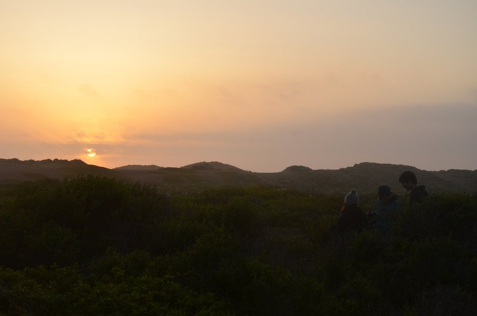 Sonnenuntergang in den Dünen am Manchester Beach.